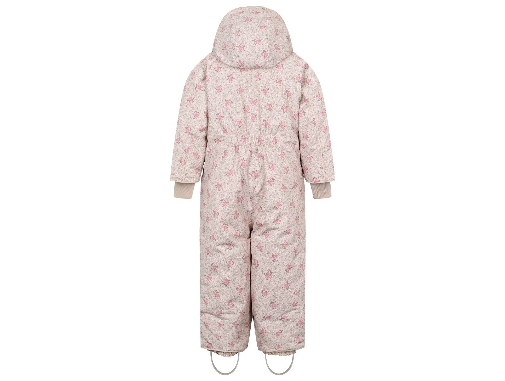 Ollie flyverdragt i sart lyserød med blomsterprint fra MarMar Copenhagen med aftagelig hætte og elastiske seler