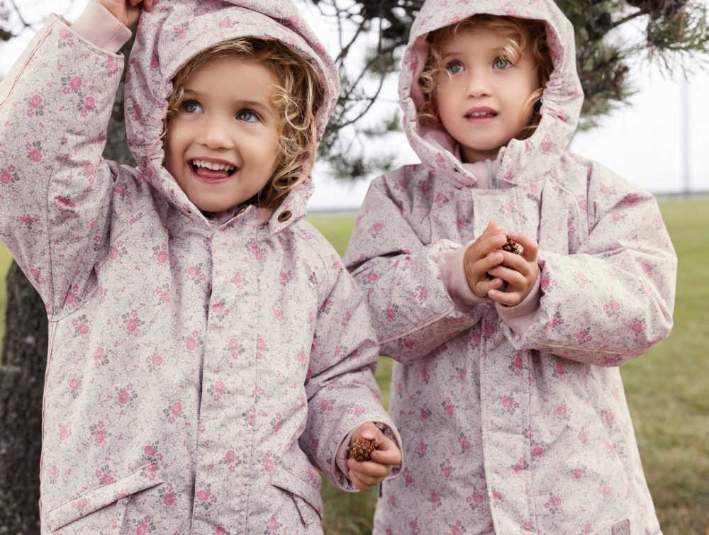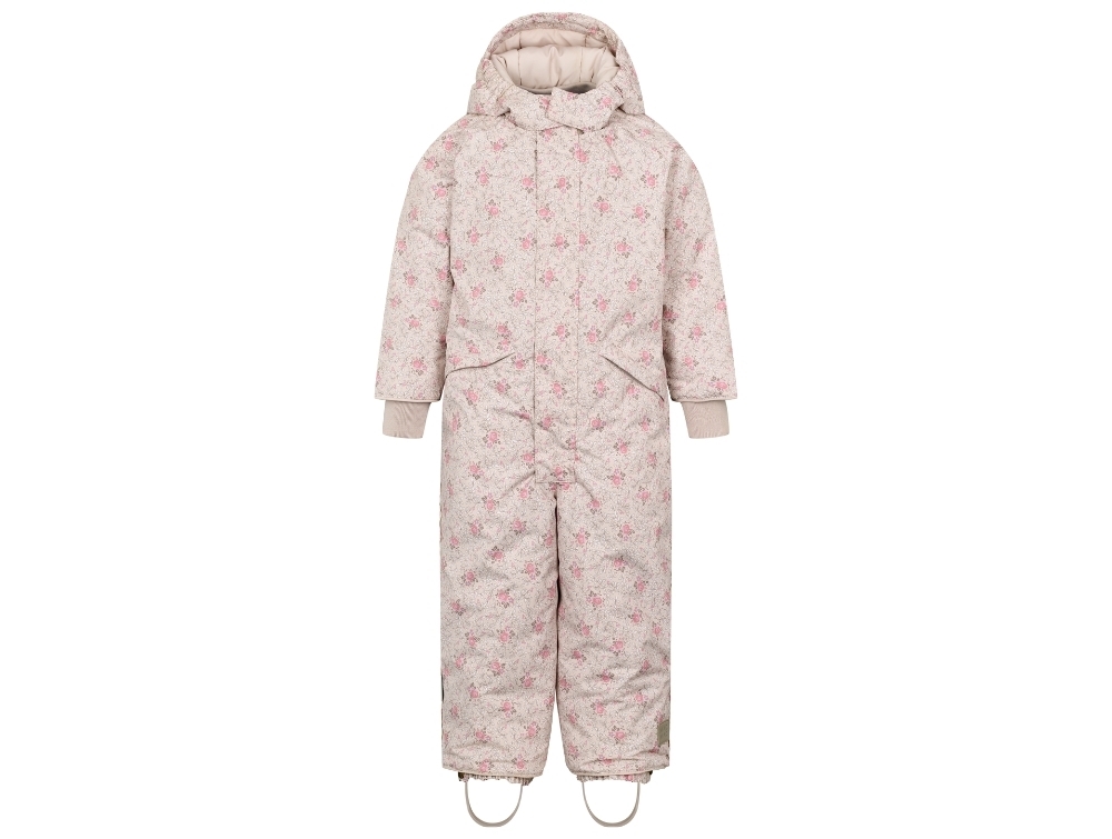 Flyverdragt fra MarMar Copenhagen i sart lyserød nuance (flowerbed) med et yndigt blomsterprint i rosa og grå nuancer.
