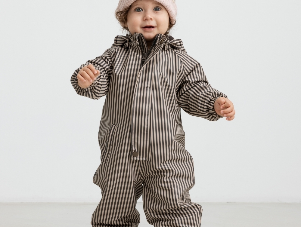 Regndragt i brun nuance med mørke lodrette striber fra MarMar Copenhagen.