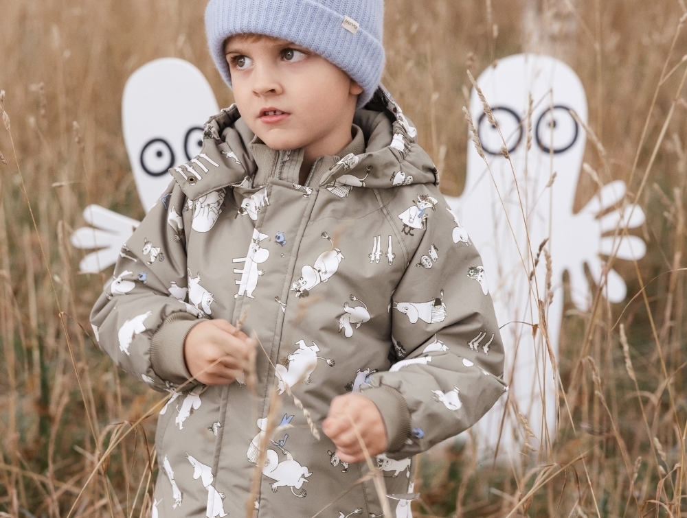 Mere information om MarMar Osak vinterjakke beige med mumi-print