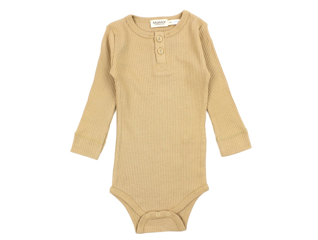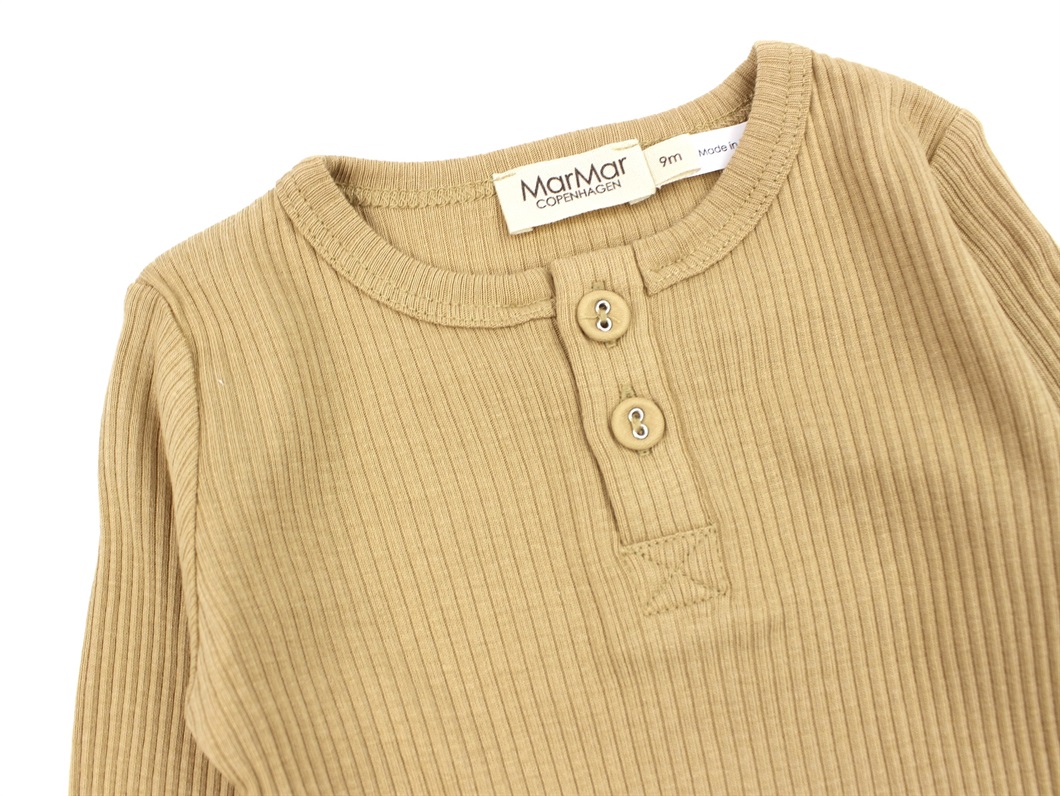 Langærmet body med knapper i farven cumin fra MarMar Copenhagen.