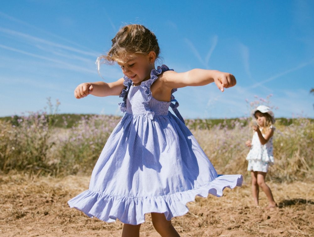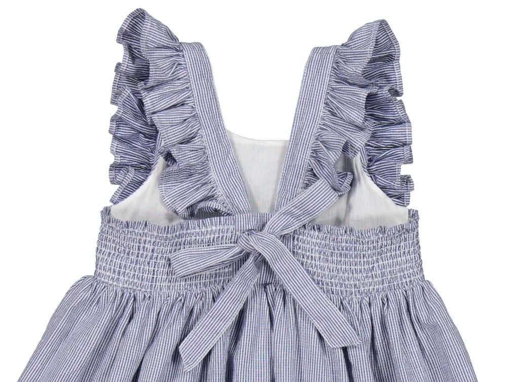 Pige klædt i blåstribet sommerkjole med flæser fra MarMar Cph 525-382-30 navy stripesBlåstribet sommerkjole med flæser fra MarMar Cph 525-382-30 navy stripesBlåstribet sommerkjole med smock og bindestroper fra MarMar Cph 525-382-30 navy stripesSkulderstropper med flæser på blåstribet sommerkjole fra MarMar cph 525-382-30 navy stripesPige med blåstribet sommerkjole med flæser fra MarMar Cph 525-382-30 navy stripes