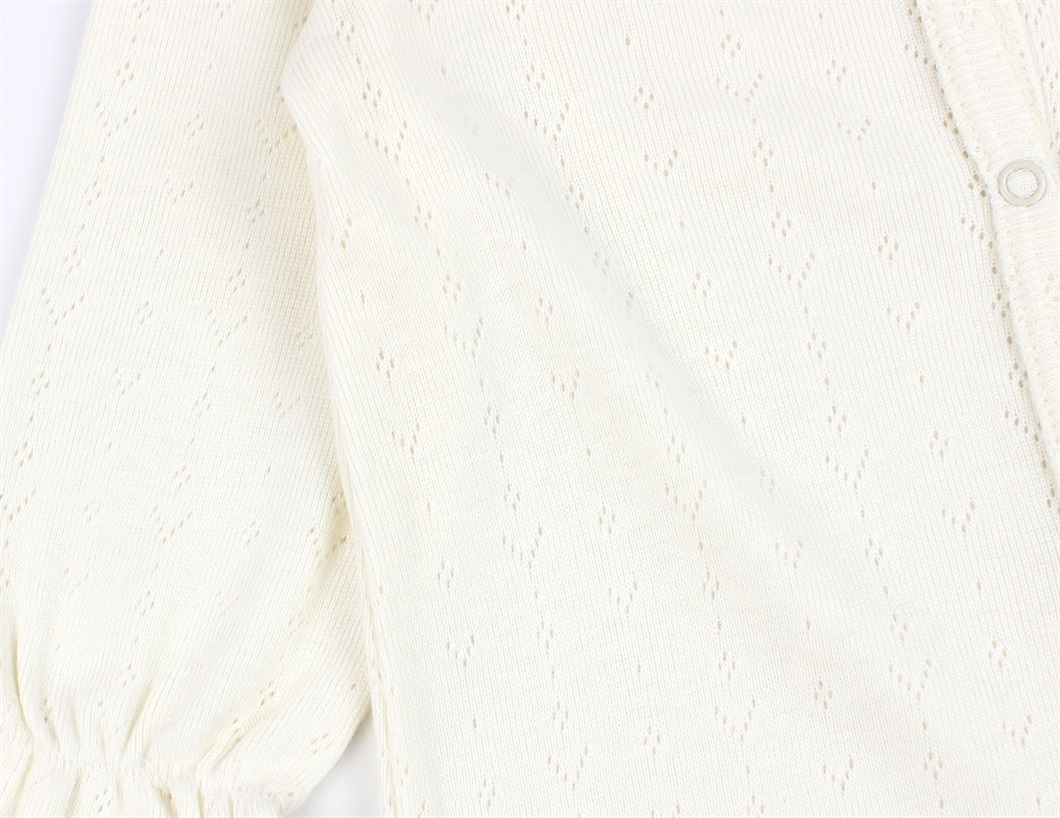Heldragten har hulmønster og er produceret i 50% økologisk bomuld og 50% modal.
