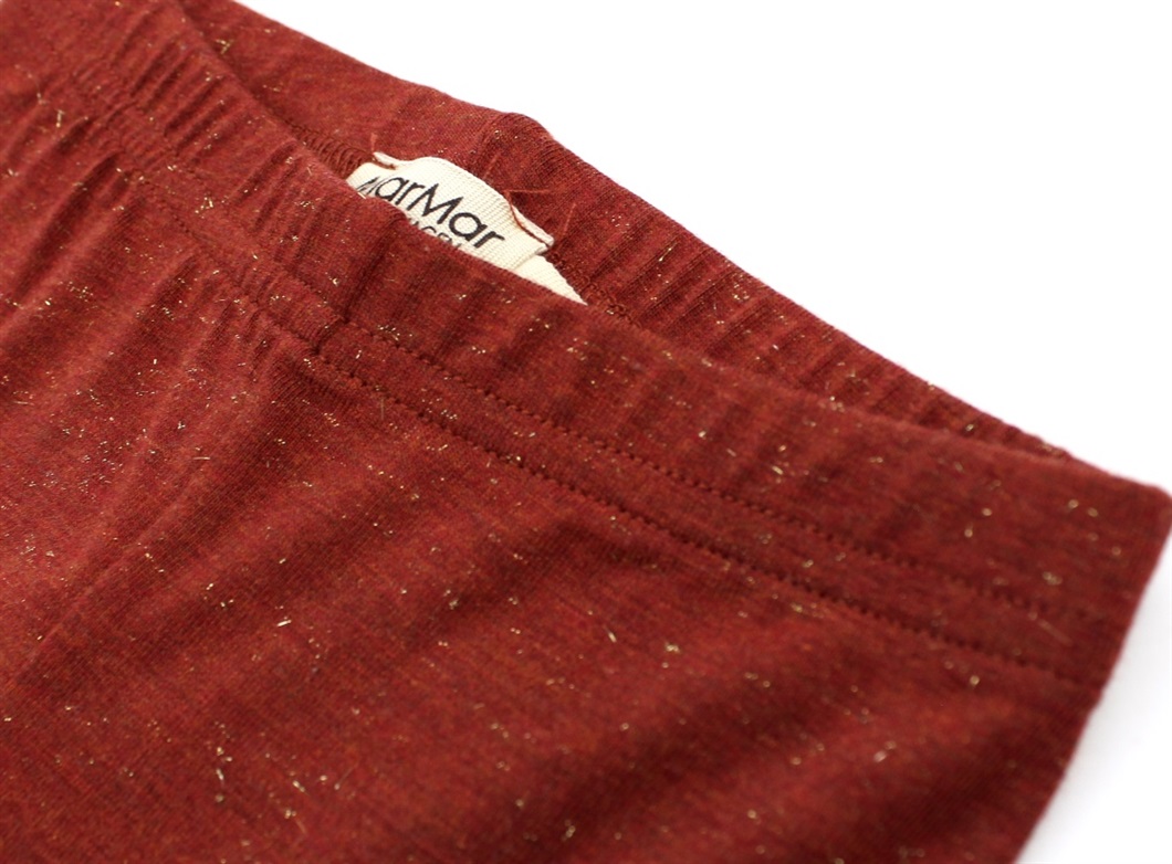 Bukser/leggings i farven dark ruby med glimmertråde fra MarMar Copenhagen.
