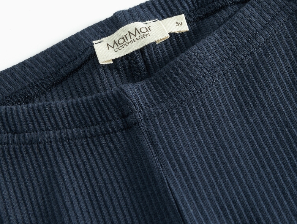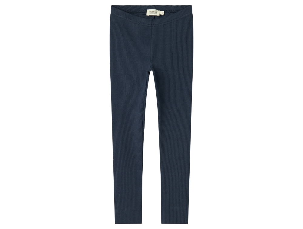 Leggings i mørkeblå (pilot navy) fra MarMar. Modellen er ribstrikket og har elastik i taljen.