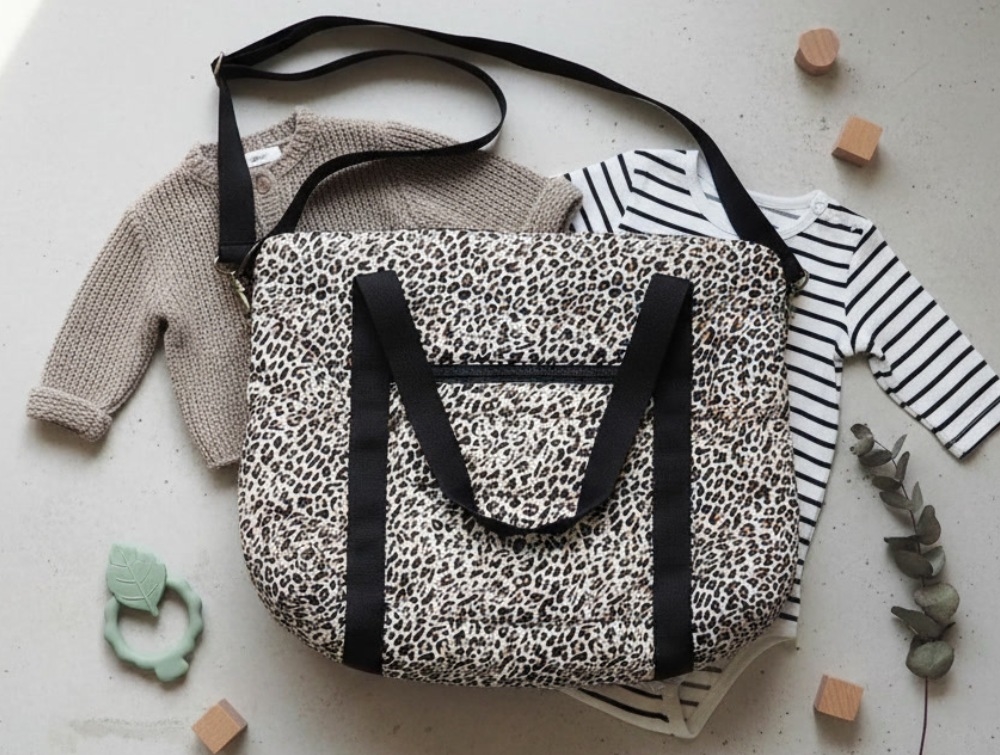 Tasken har en justerbar skulderrem og to bærehanke. Der medfølger et pusleunderlag.