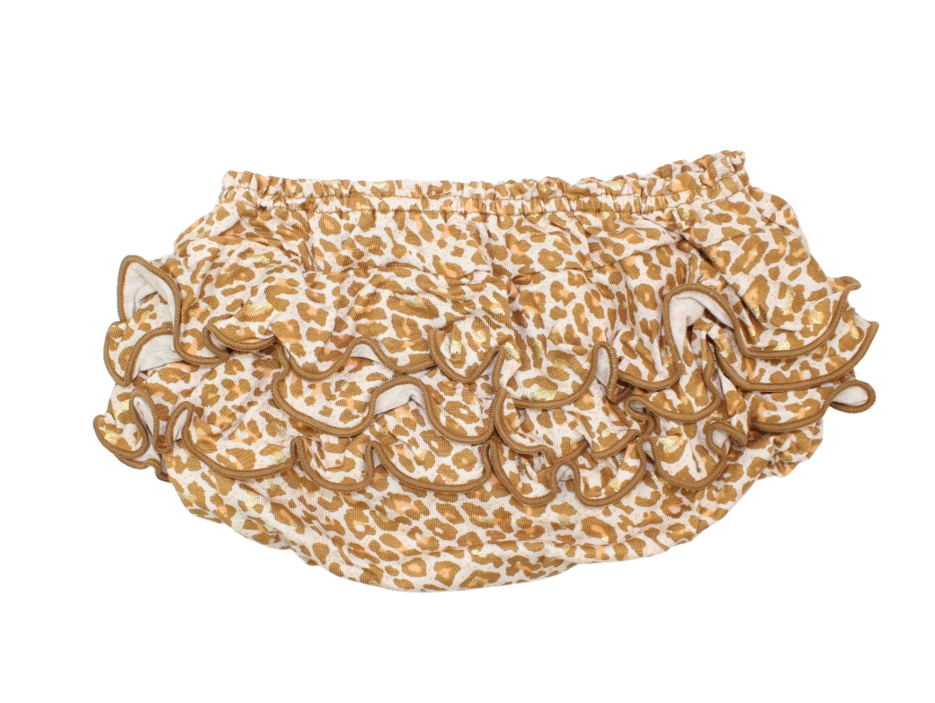 Shorts i farven caramel med leoprint fra MarMar. Shortsene har flæser bagpå og elastik i linning og ben.