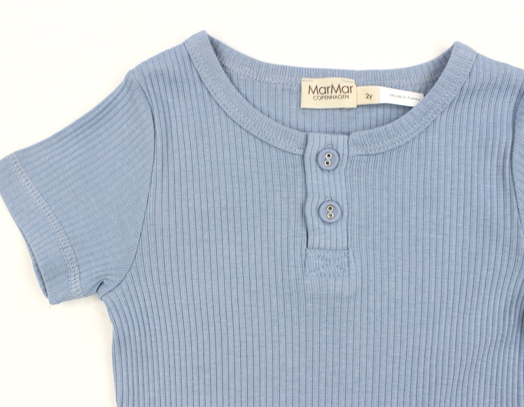 Kortærmet t-shirt med knapper i farven storm cloud fra MarMar Copenhagen.