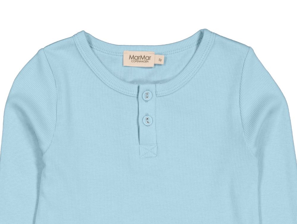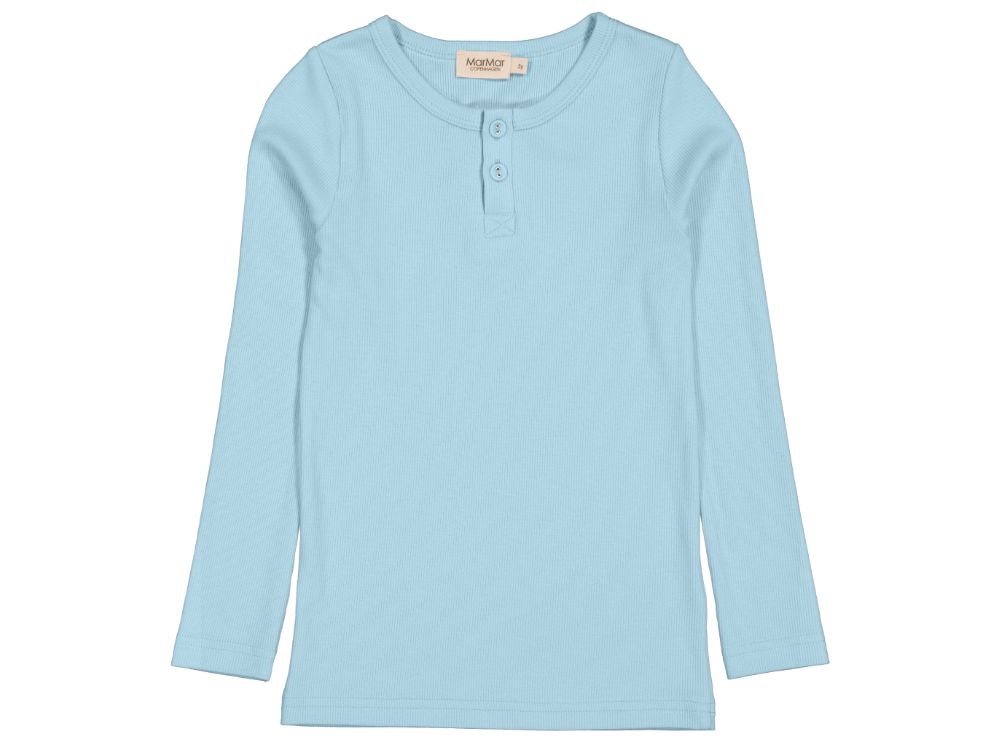 Langærmet basis T-Shirt i lyseblå med knaplukning fra Mar Mar Copenhagen 252-115-30 Heavenly BlueRund halsudskæring med stolpelukning lyseblå Mar Mar Copenhagen T-shirt 252-115-30 heavenly blue
