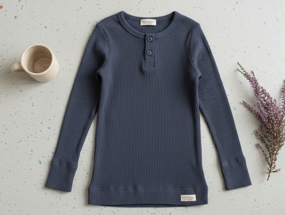 Blå langærmet t-shirt fra MarMar. Produceret i 50% modal og 50% bomuld.