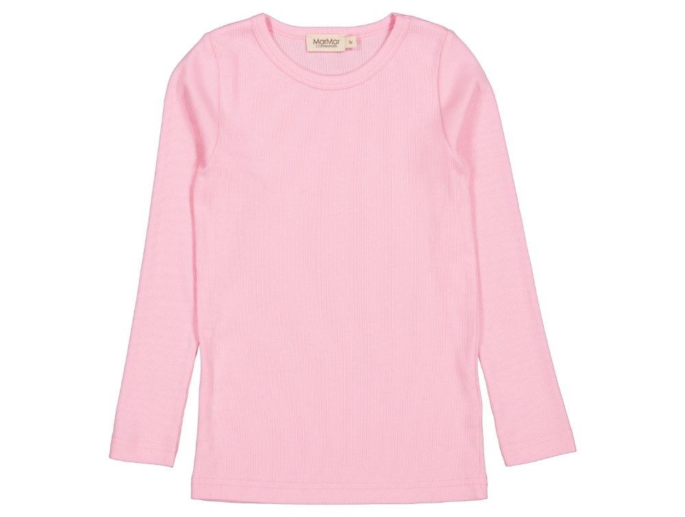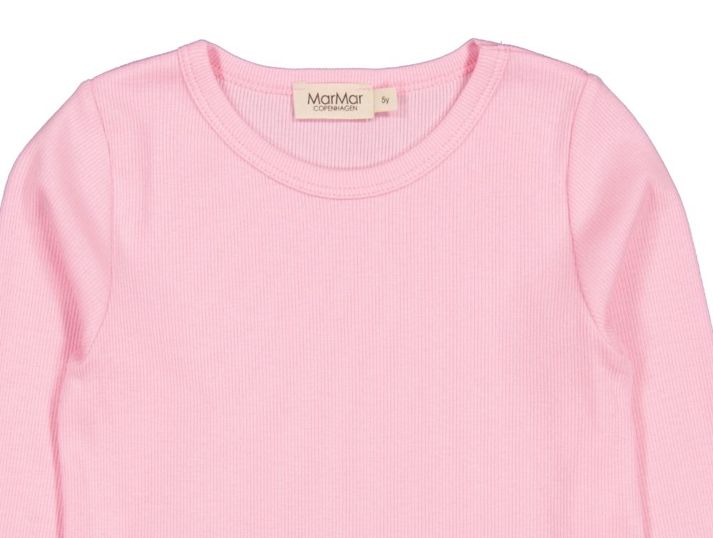 Lyserød langærmet basis t-shirt i ribkvalitet fra Mar Mar Copenhagen 252-115-32 pink blossomRund halsudskæring på lyserød langærmet basis t-shirt i ribkvalitet fra Mar Mar Copenhagen 252-115-32 pink blossom