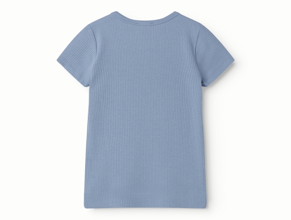 T-shirten er fremstillet i en blød ribkvalitet, som føles behagelig mod huden og giver god bevægelighed. Den lette og åndbare kvalitet gør den velegnet til sommerbrug, samtidig med at den fungerer godt både som t-shirt i hverdagen og som nattøj, hvor materialet bidrager til en rolig og behagelig nattesøvn.