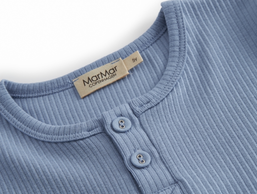 MarMar t-shirt i blue iris med ribMarMar t-shirt i blue iris med knapperMarMar t-shirt i blue iris med logomærkeMarMar t-shirt i blue iris set bagfra
