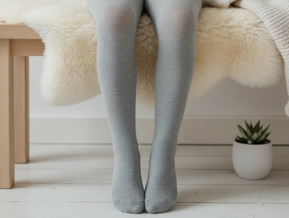 Melton strømpebukser light grey melange i bambusviskose