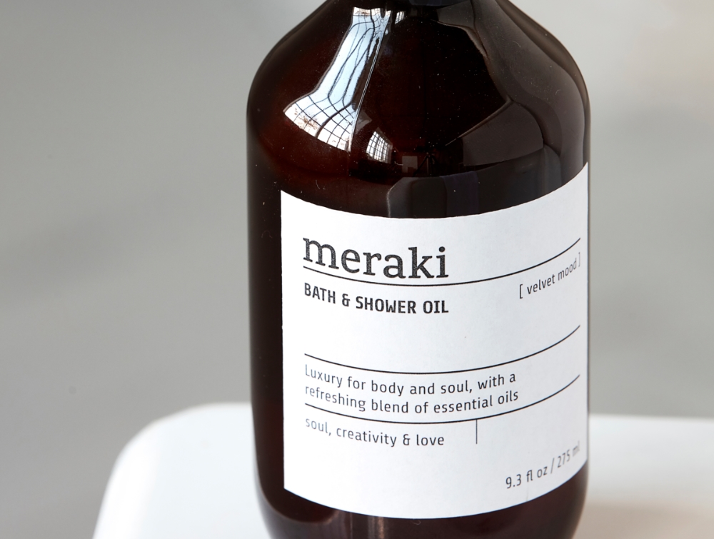 Mere information om Meraki brown velvet mood bath & shower oil 275ml