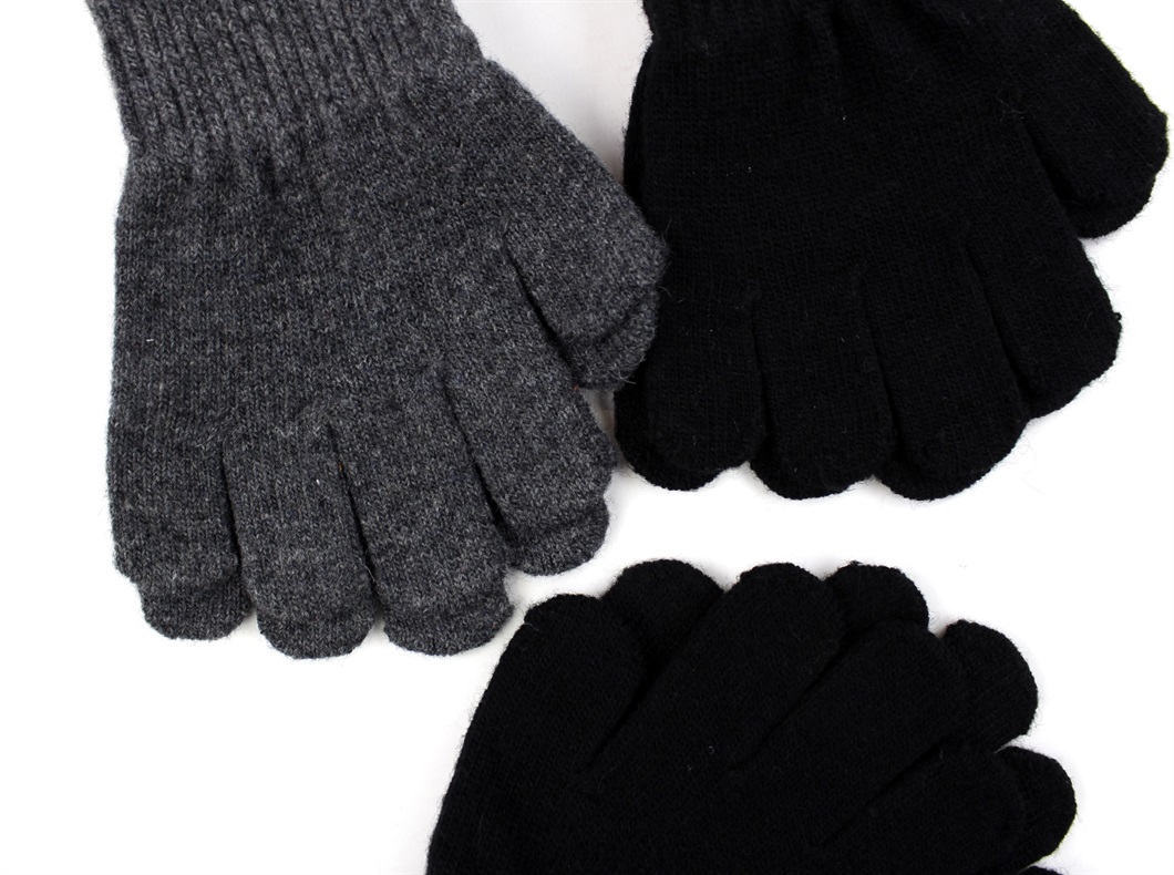 Mikk-line black/antrazite fingervanter uld/kunst (3-pak)