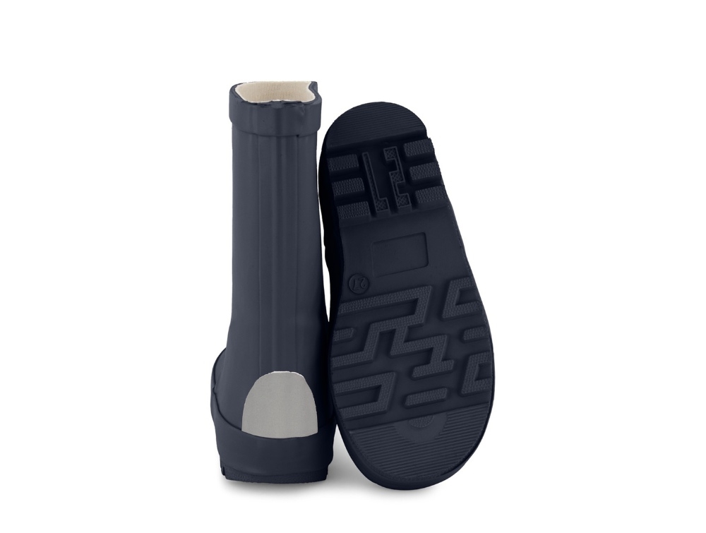 mørkeblå gummistøvler fra Mikk-Line forfrabarn iført mørkeblå gummistøvler fra Mikk-Linebarn iført mørkeblå gummistøvler fra Mikk-Line i vandpytbagside og sål på mørkeblå gummistøvler fra Mikk-LineMærkat - fri for skadelige stoffer