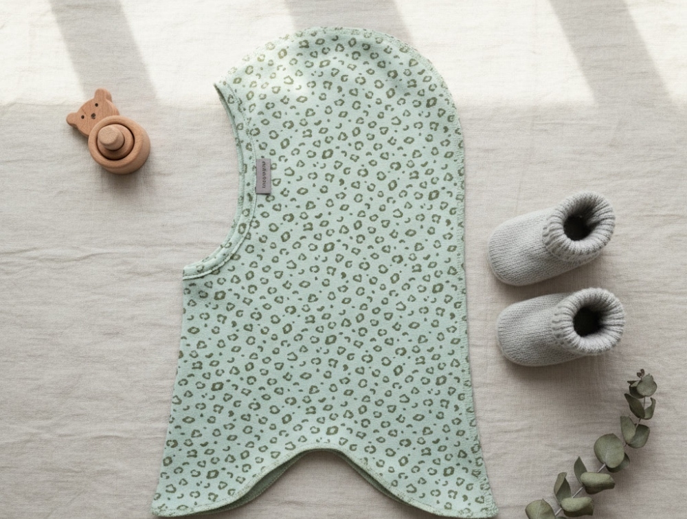 Elefanthue i farven chinois green med leopardprint fra Mikk-line.