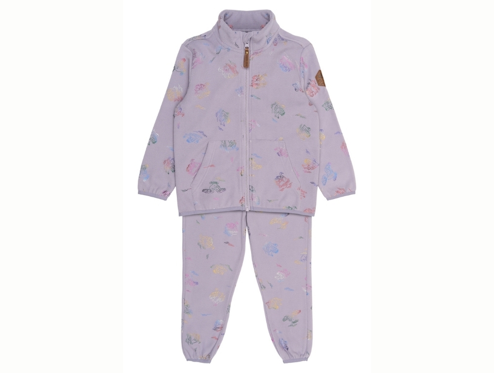 Fleece sæt i lilla nuance (swan foil aop) med svaneprint fra Mikk-line.