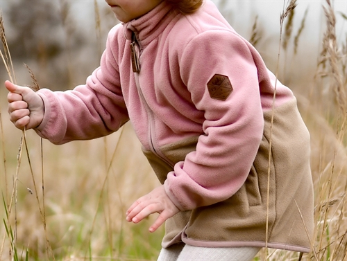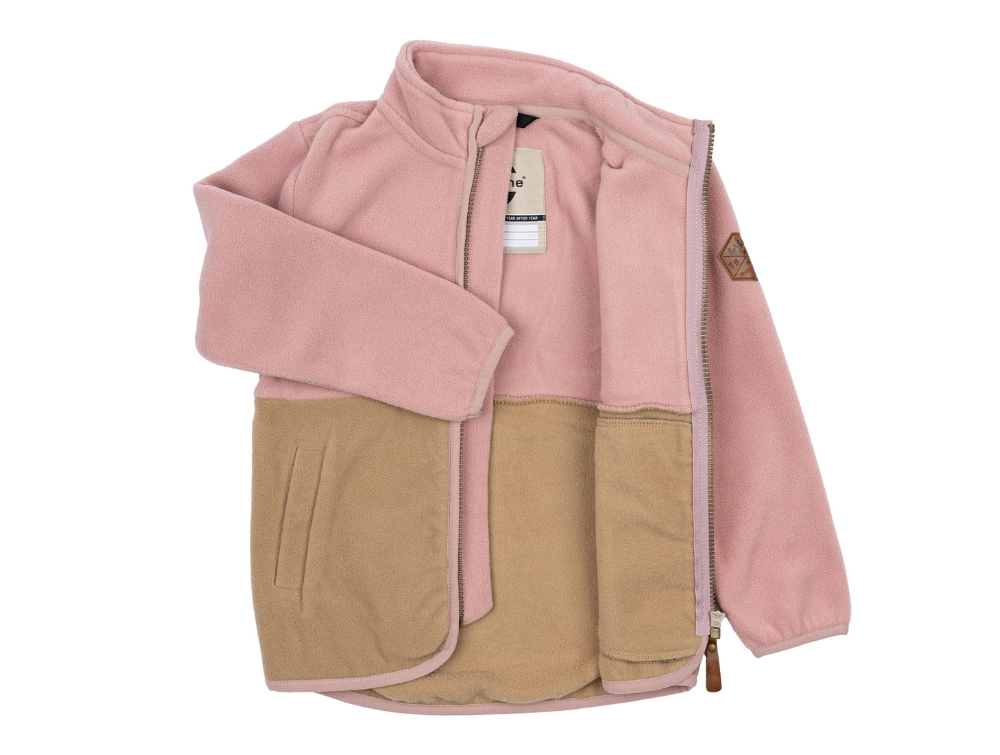 Fleecejakke i farven woodrose med lysebrun nedre del fra Mikk-line. Jakken er fremstillet af genanvendt mikrofiberfleece, som har en behagelig og let kvalitet. Den kan bruges som en let jakke på lunere dage i foråret og sommeren eller som et isolerende mellemlag under en jakke, regntøj eller flyverdragt i de koldere måneder. Materialet har en anti-peeling kvalitet, der hjælper med, at fleecen forbliver pænere i længere tid. Jakken har en YKK-lynlås med hagebeskytter for ekstra komfort og to praktiske åbne lommer. Den er fremstillet i 90% genanvendt polyester og 10% polyester og er certificeret efter OEKO-TEX® Standard 100 (Class 1), hvilket sikrer, at den er fri for skadelige stoffer.