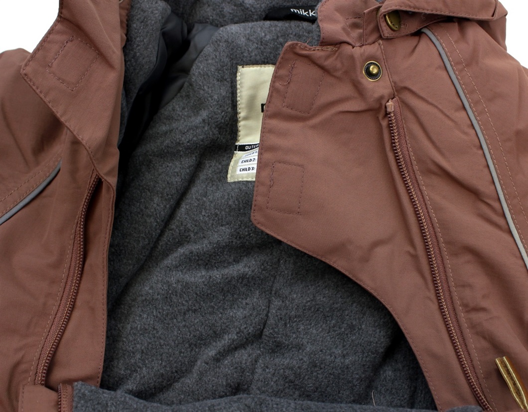 Flyverdragt i farven nutmeg fra Mikk-line. Flyverdragten har en aftagelig hætte med trykknapper.