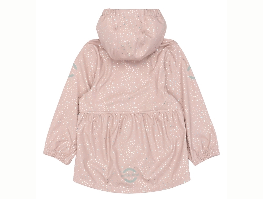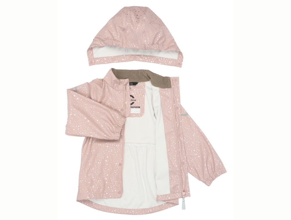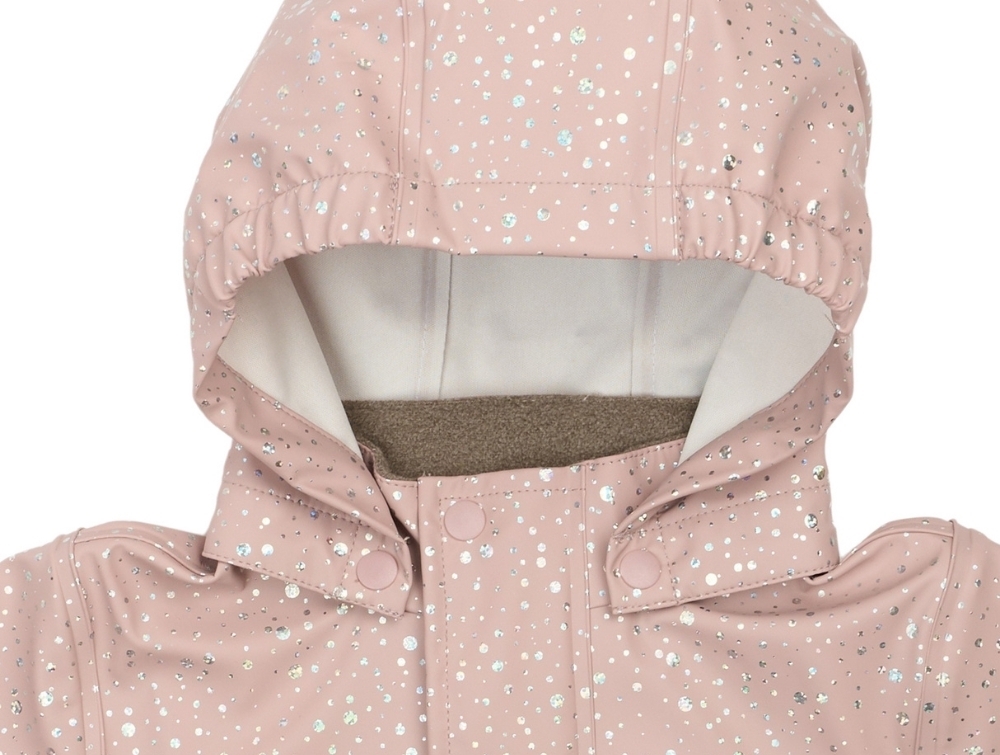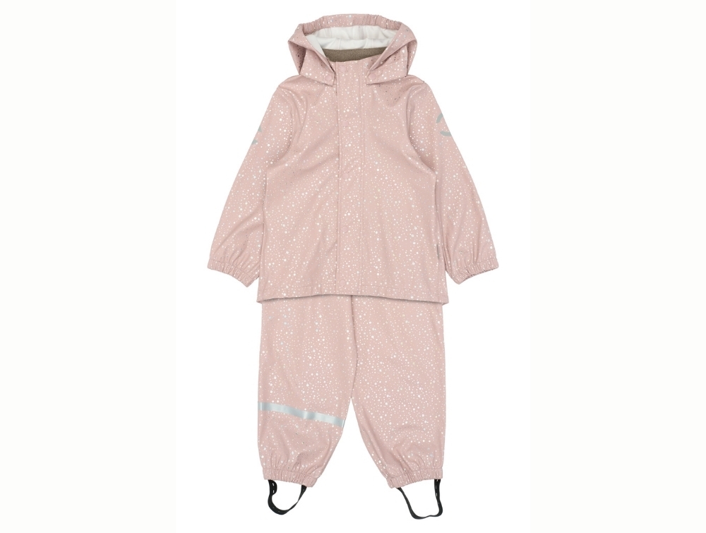 Regnsæt i rosa nuance (adobe rose) fra Mikk-line med glitrende all-over print, der glimter i lyset.