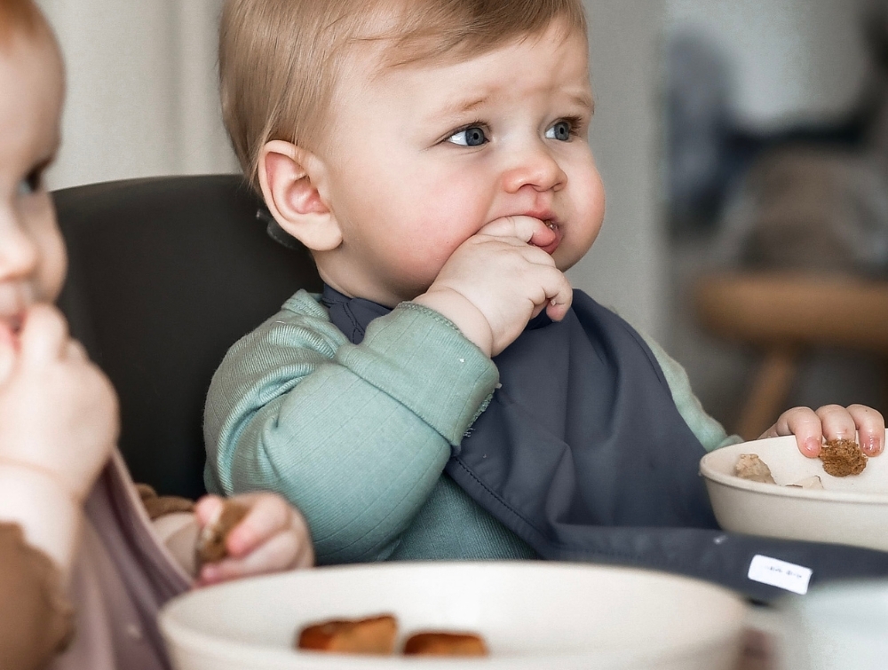 Denne model fra Mikk-Line er designet til at beskytte barnets tøj effektivt under måltider. Den lange form dækker bryst og mave godt, mens lommen nederst opfanger krummer og væske. Materialet er vandtæt, let og nemt at rengøre – enten med en fugtig klud eller ved afskylning under vandhanen.