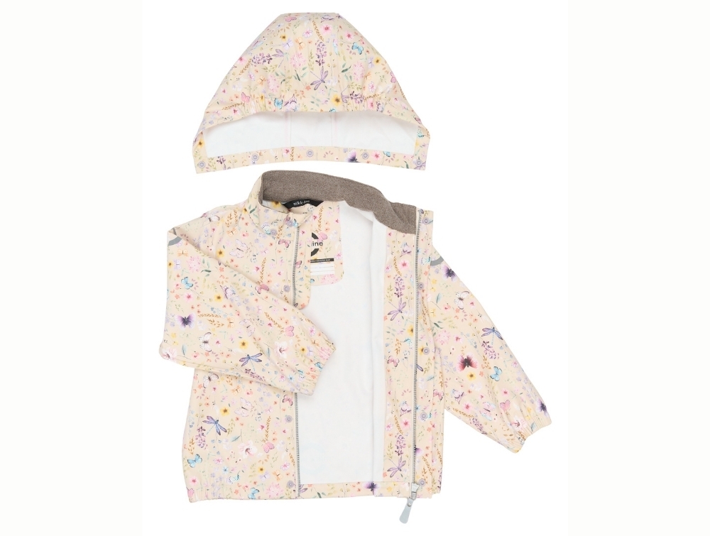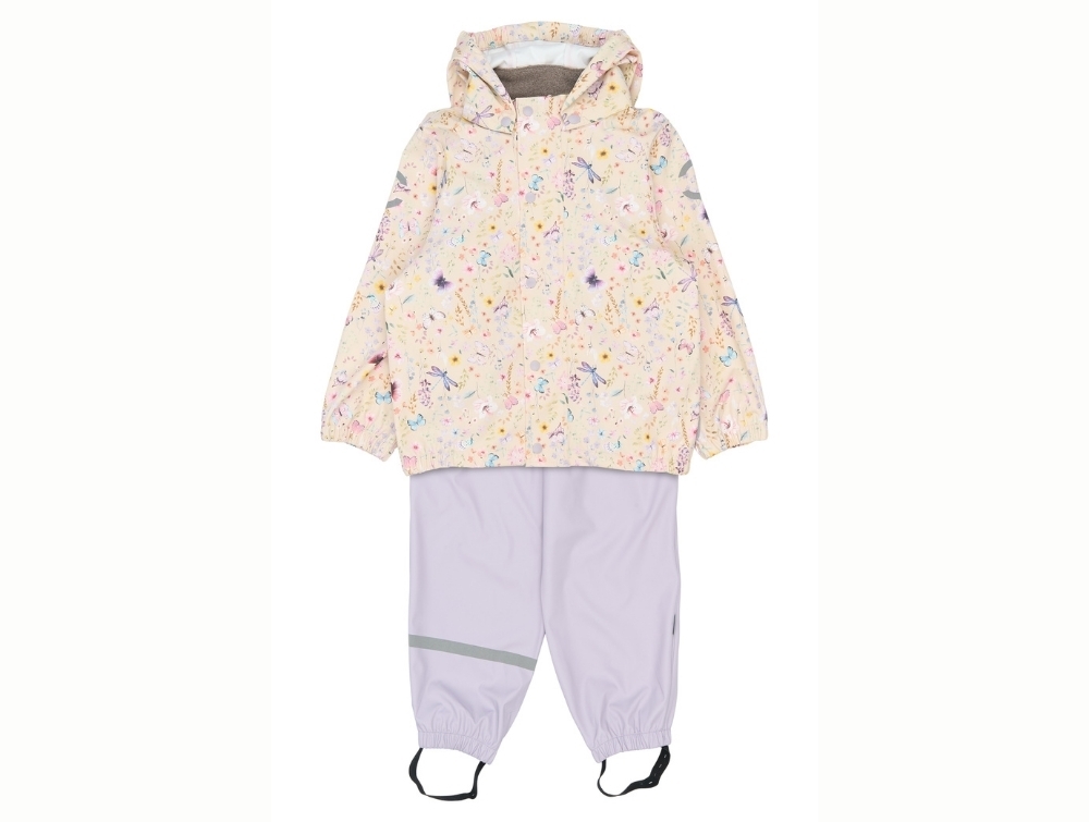 Regnsæt i sart beige nuance med sommerfugleprint (butterfly aop) fra Mikk-line.