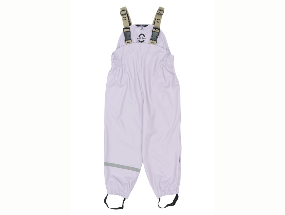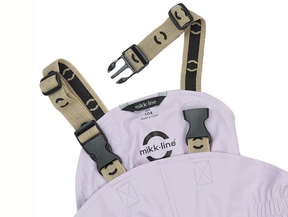 Regnsættet leveres med seler i størrelser 74–104 og uden seler i størrelser 110–152. De større størrelser har i stedet elastik og justerbare stropper i taljen for optimal pasform.