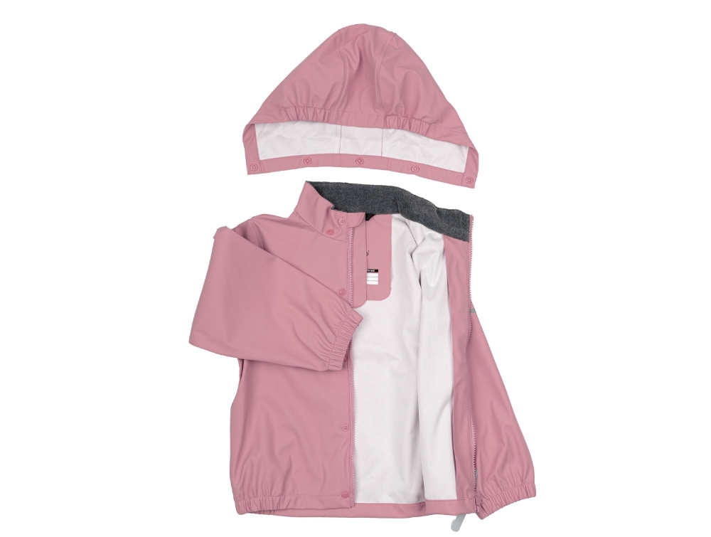Mikk-Line regnsæt lilas med refleks og aftagelig hætte - lyserød farveMikk-Line regnsæt lilas med refleks og aftagelig hætte- åben jakkeMikk-Line regnsæt lilas med refleks og aftagelig hætte-nærbillede