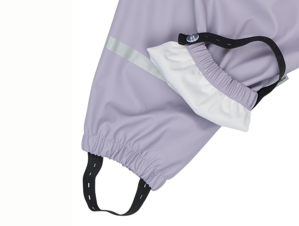 Mikk-line regnsæt lavender gray med selerMikk-line regnsæt lavender gray med åben jakkeMikk-line regnsæt lavender gray med seler og reflekserMikk-line regnsæt lavender gray set seler bagfraMikk-line regnsæt lavender gray fodstrop detalje