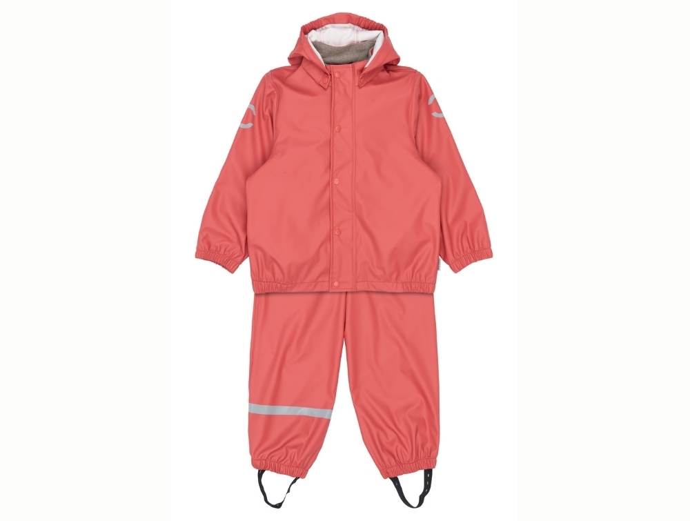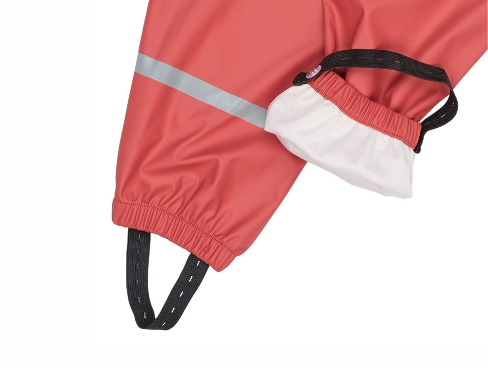 Mikk-line regnsæt cranberry bæres af barnMikk-line regnsæt cranberry uden selerMikk-line regnsæt cranberry med åben jakkeMikk-line regnsæt cranberry bukserMikk-line regnsæt cranberry fodstrop detalje