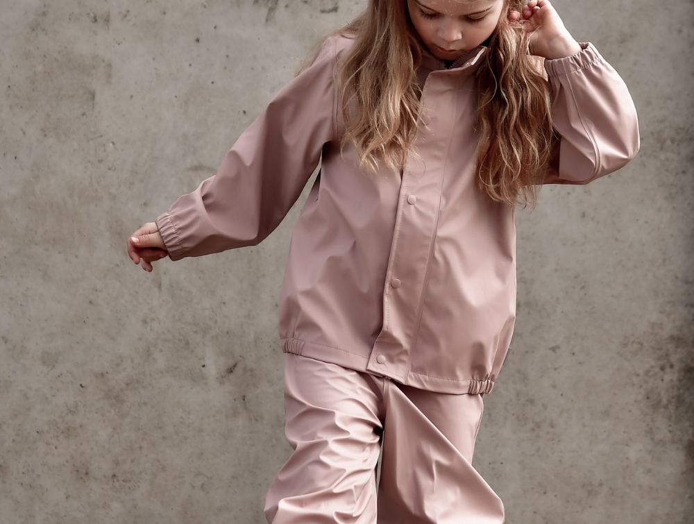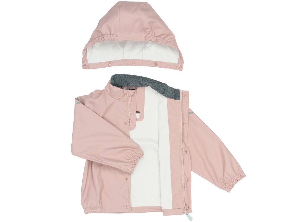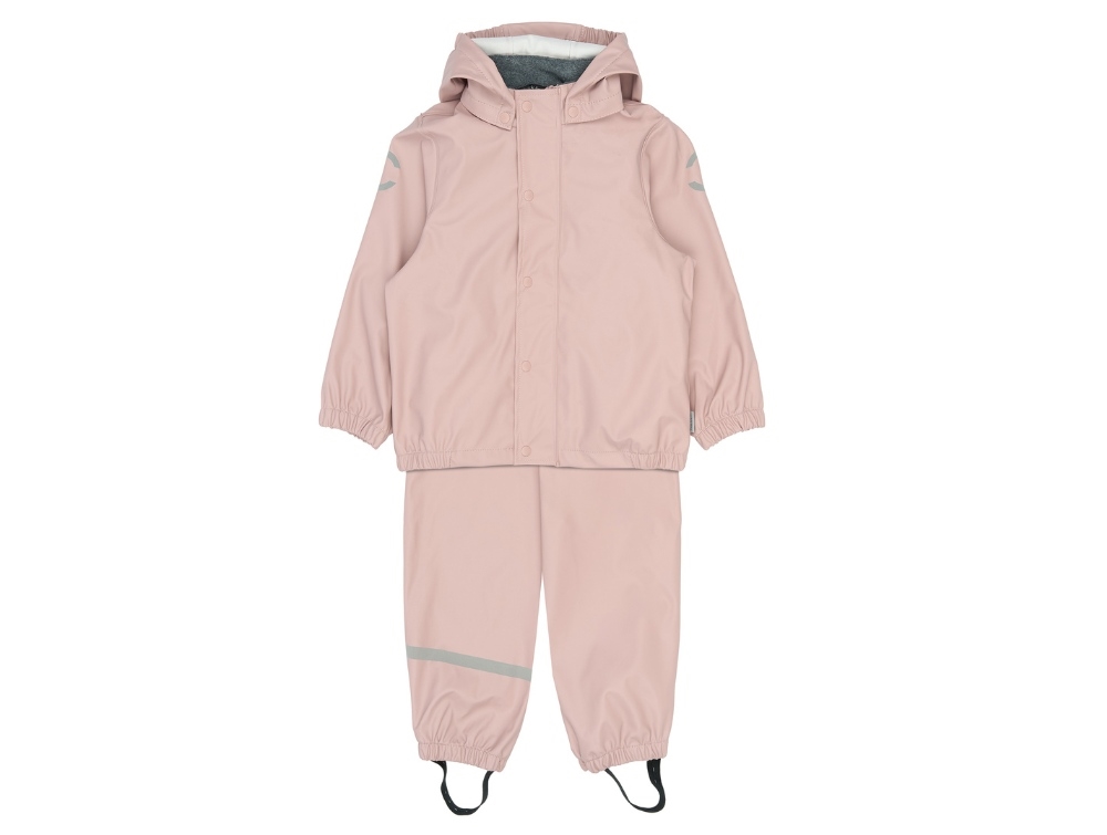 Barn i regnsæt fra Mikk-Line i farven adobe roseMikk-Line regnsæt i rosa med jakke og bukser set forfraBarn i rosa regnsæt fra Mikk-LineMikk-Line regnjakke i rosa med aftagelig hætte og fleece ved halsMikk-Line regnsæt i rosa med hætte og logo bagpåMikk-Line regnbukser i rosa med refleksdetaljer