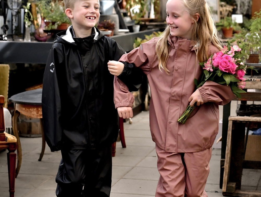 Regnsættet er perfekt til regnvejr og leg udenfor. Det er nemt at tage på og nemt at holde rent, og navnemærket gør det muligt at give det videre til næste barn.