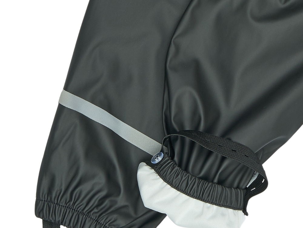 Det klassiske PU-regnsæt fra Mikk-Line er vindtæt og vandtæt med svejsede sømme og justerbare fodstropper. Jakken har blød fleece ved halsen, lynlås med hagebeskytter samt trykknapper. Bukserne har elastik i livet og ved anklerne. Sættet har synlige refleksdetaljer på både ærmer og ben.