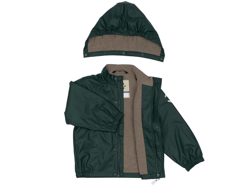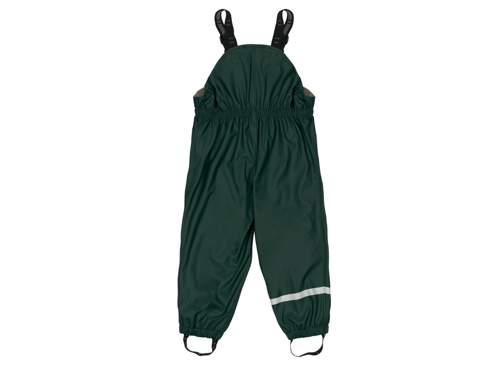 Mikk-Line regntøj i mørkegrøn med fleecefor, seler (str. 74-104) og svejsede sømme