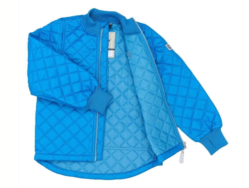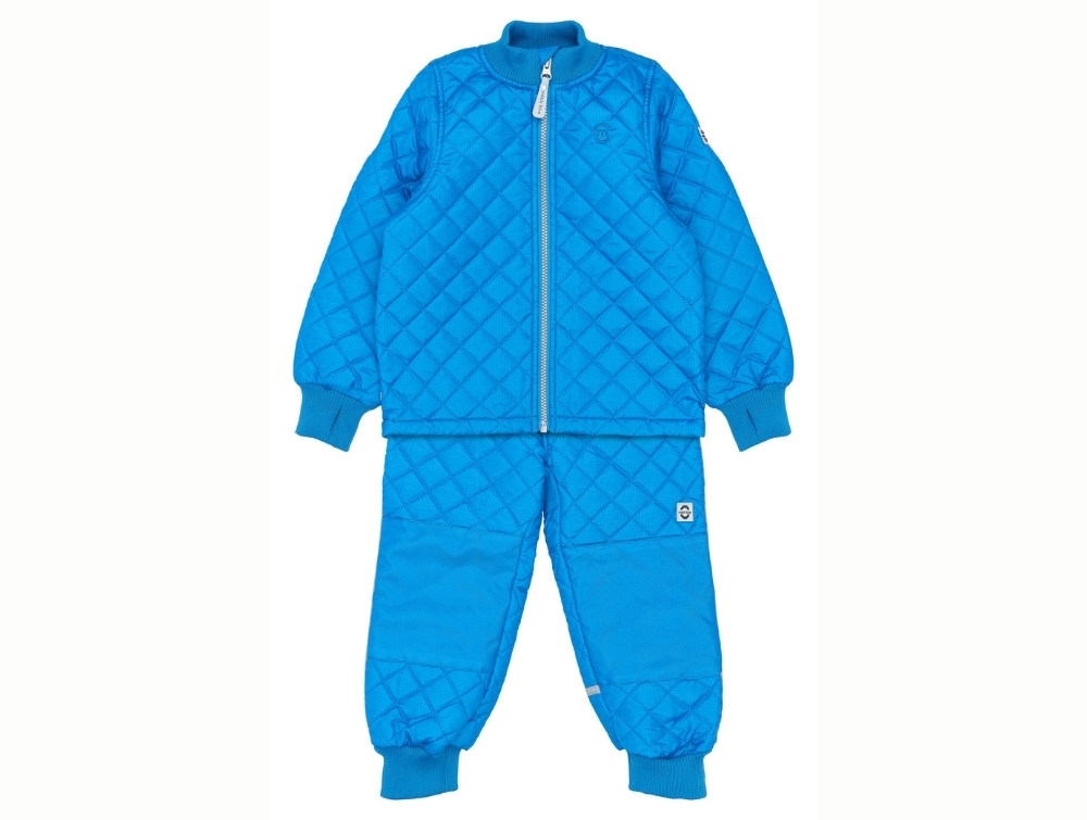Mikk-line kraftigt blåt termosæt med quilt, ribdetaljer og forstærkede felter