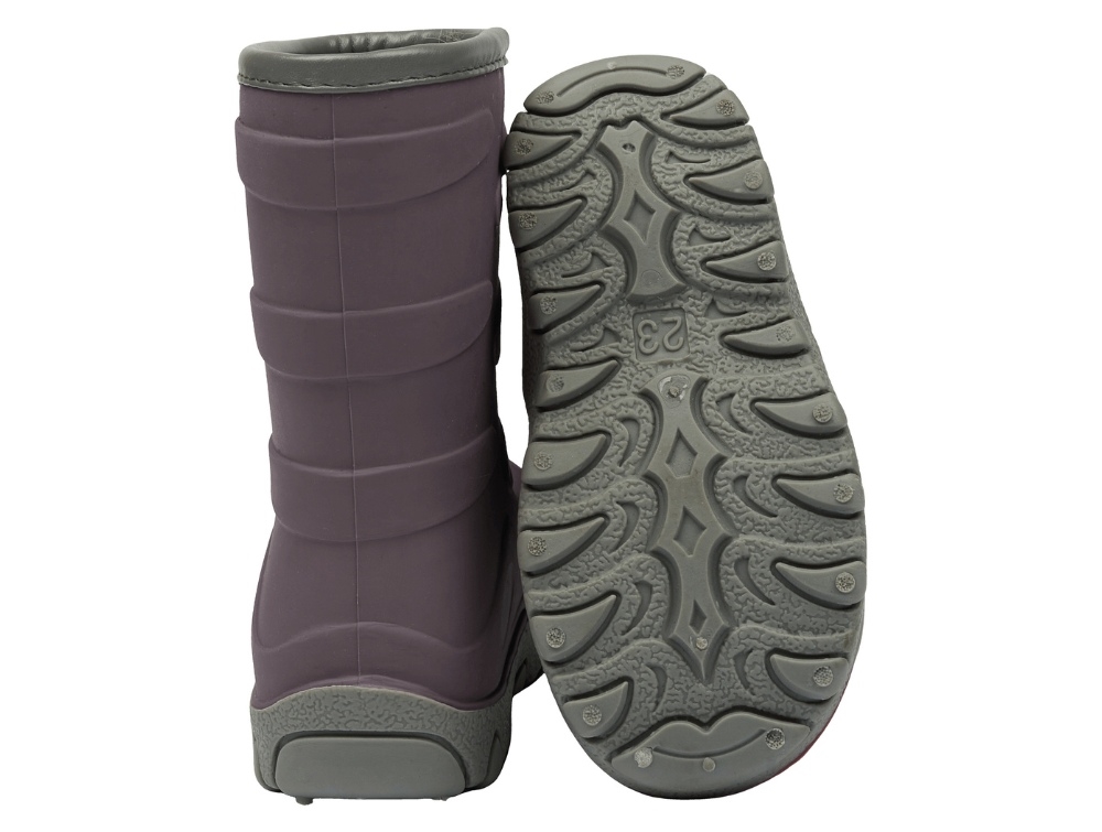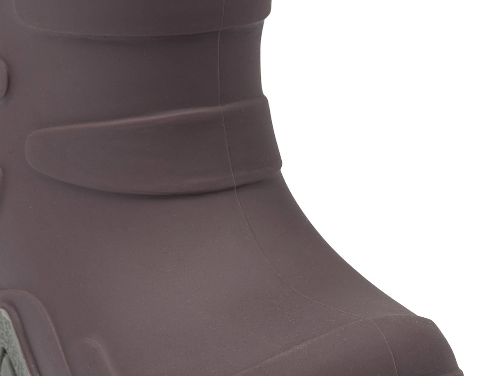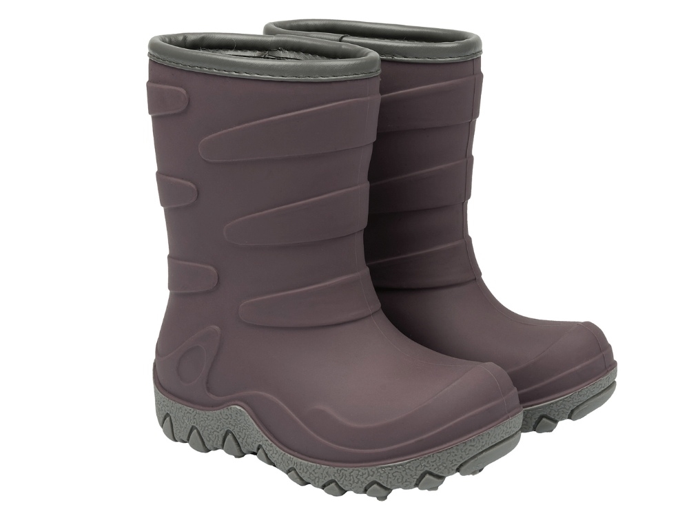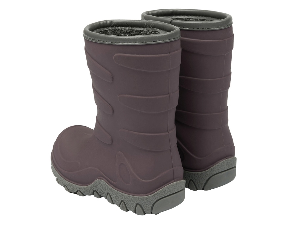 Termostøvle i gråbrun nuance med lilla toner fra Mikk-Line. Støvlerne er udviklet til at give ekstra varme og beskyttelse mod sne, sjap og regn, og hjælper med at holde børns fødder tørre og komfortable i kolde og våde vejrforhold. De er fremstillet i slidstærkt og vandtæt naturgummi og er naturligvis fri for ftalater.