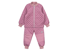 Termosæt i støvet olivengrøn (dusty olive) fra Mikk-Line. Sættet er quiltet, har ribkanter og slidstærke forstærkninger på knæ og sæde, hvilket gør det oplagt til udendørsaktiviteter i overgangsperioder. Det er vindtæt og vandafvisende og har en unisex pasform, som gør det nemt at give videre.