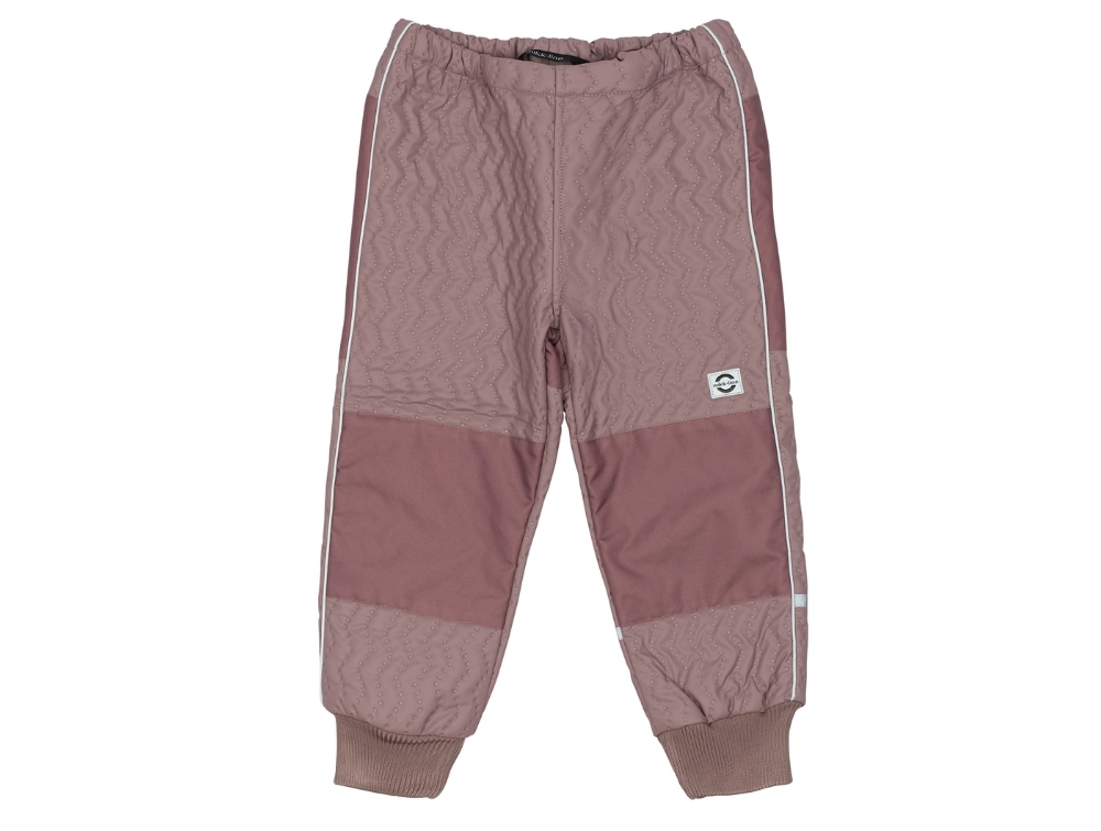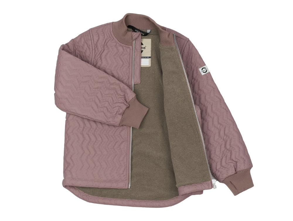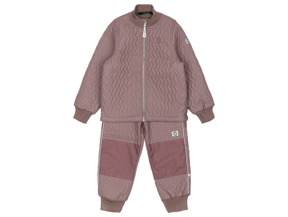 Mikk-Line termotøj i støvet lilla nuance (twilight mauve) med quiltet overflade og blødt fleecefor i jakken. Termosættet er Mikk-Lines varmeste model og perfekt til udendørs leg i kolde, blæsende og våde vejrforhold.