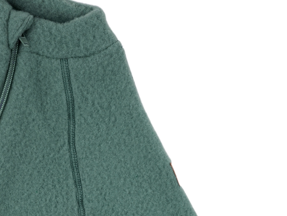 Mikk-Line ulddragt i grøn med YKK-lynlås og praktiske vendbare kanter