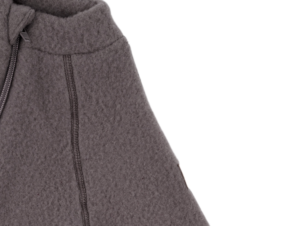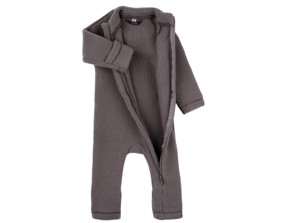 Mikk-Line ulddragt i gråbrun med YKK-lynlås og vendbare kanter til hænder og fødder