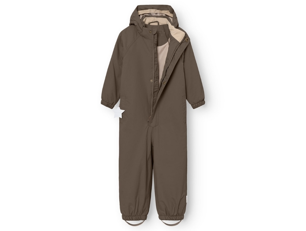 Flyverdragten har aftagelig hætte, lang lynlås foran og elastik i ryggen for en god pasform. Den har elastik ved ærmer og ben samt aftagelige og justerbare fodstropper. Refleksstjernen fra Mini A Ture sidder i højre lomme. Flyverdragten er stor i størrelsen og giver god plads til bevægelse. I størrelserne fra 3år/98 til og med 7år/122cm er der D-ringe ved ærmerne til fastgørelse af vanter eller handsker. Bemærk, at dragten er uden fleecefor.