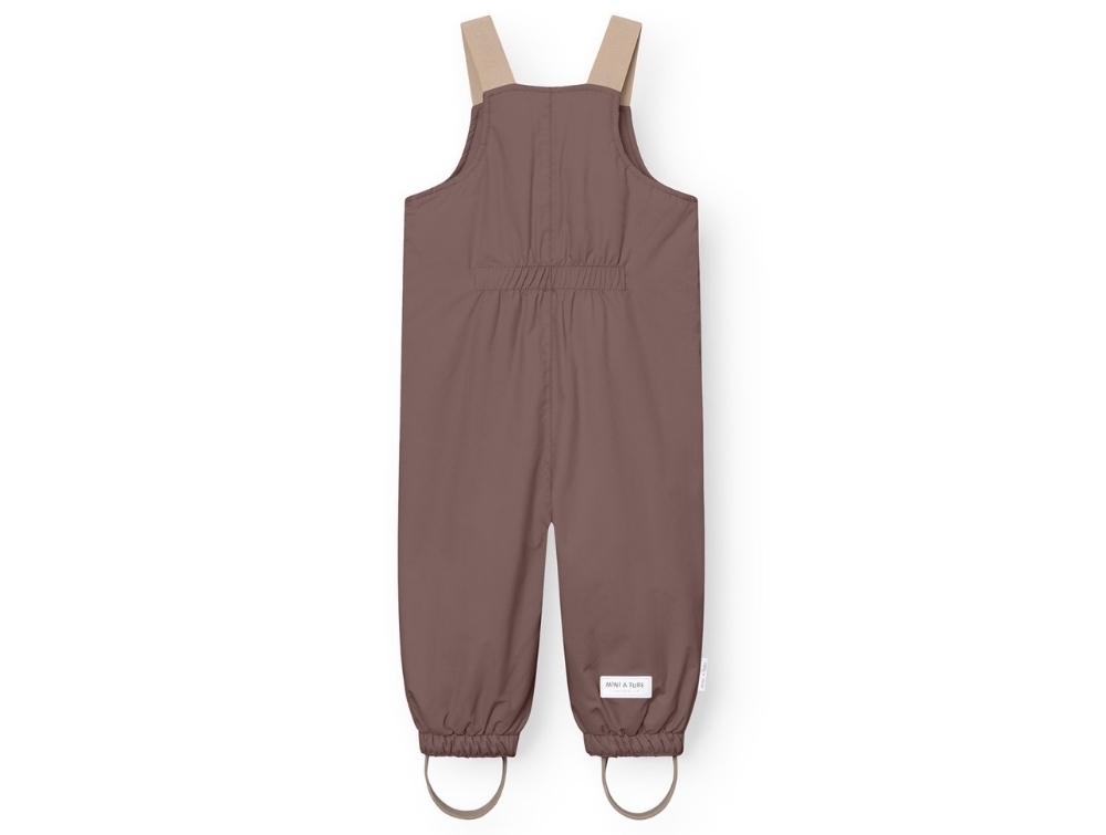 Vinterovertræksbukser i lillabrun nuance (peppercorn plum) fra Mini A Ture med seler og praktisk lynlåslukning foran.