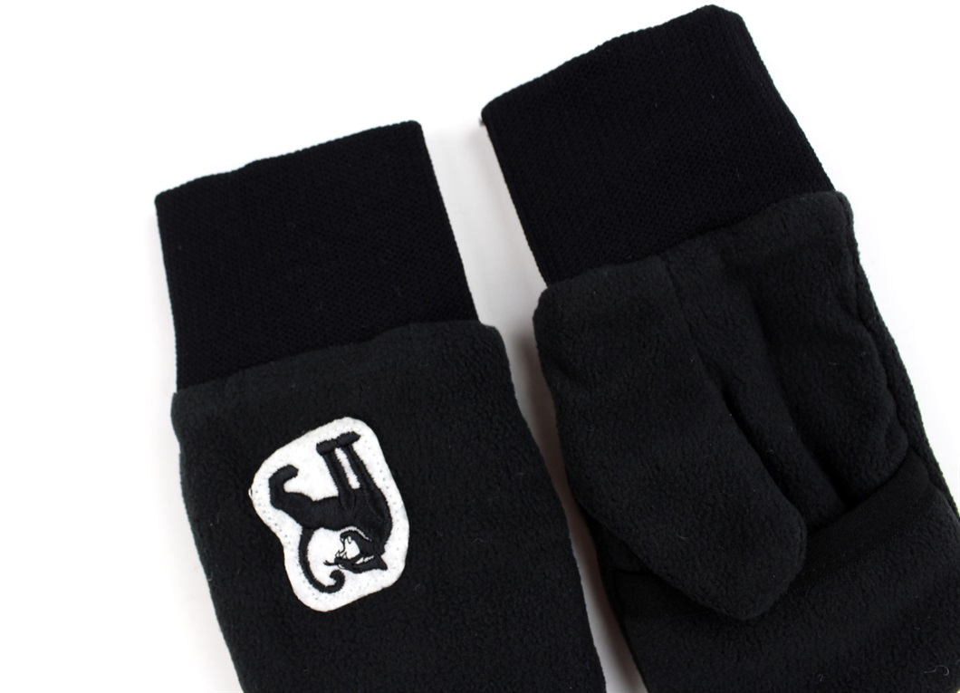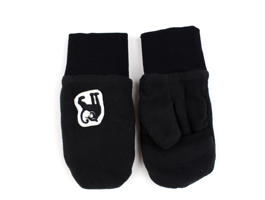 Disse fleecevanter er lavet af 100 % genanvendt polyester og har en smart funktion, hvor en åbning i håndfladen kan forvandle vanterne til fingerløse handsker. Vanterne er designet med elastiske manchetter ved åbningerne og er dekoreret med et broderet Mini Rodini Panther-patch.