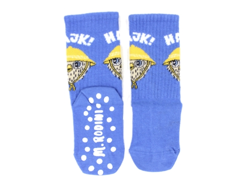 2 par blå skridsikre strømper med den seje vandre ugle fra Mini Rodini.