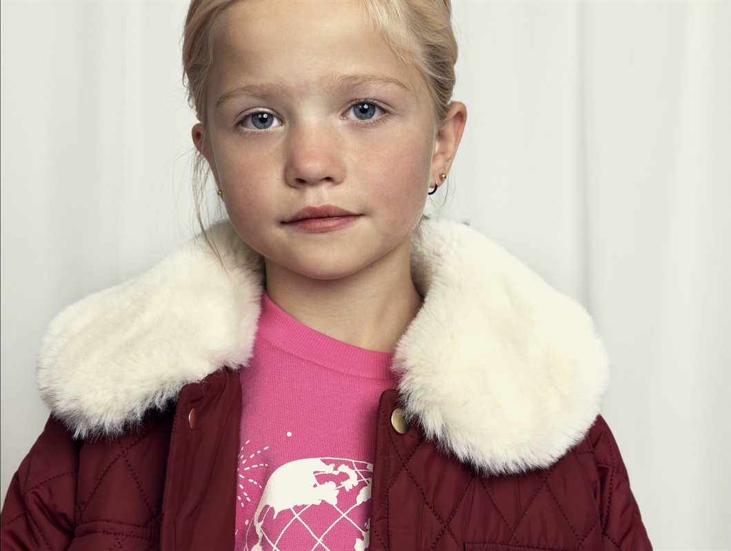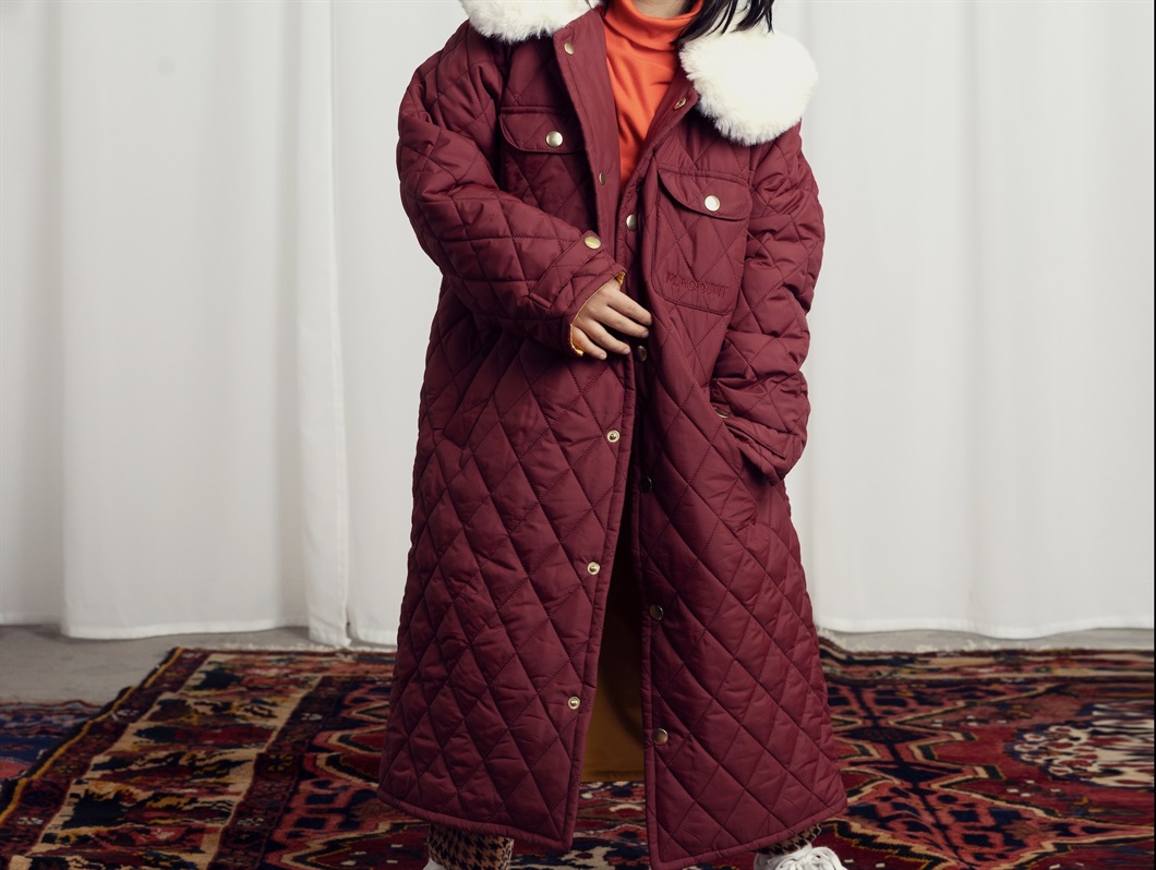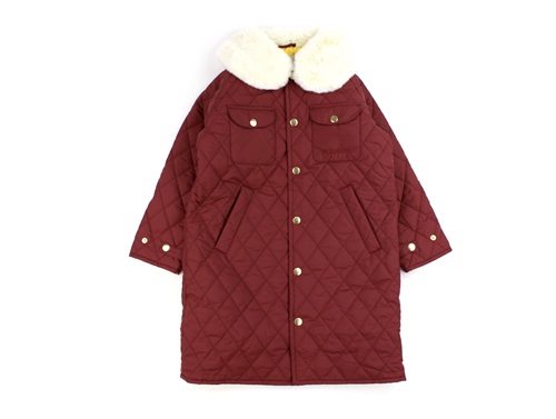 Lang quiltet frakke i farven brown med syntetisk pelskrave fra Mini Rodini.