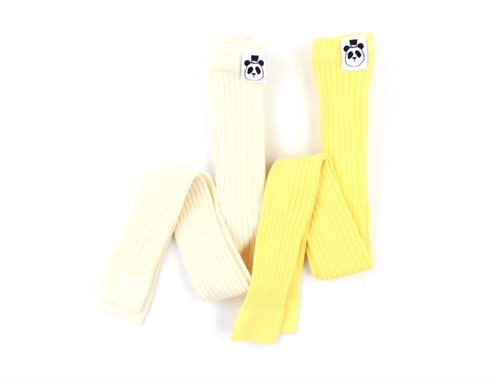 2 par leggings i henholdvis gul og offwhite fra Mini Rodini.