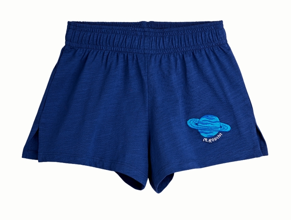Shorts i blå fra Mini Rodini med lille planetbroderi på benet.