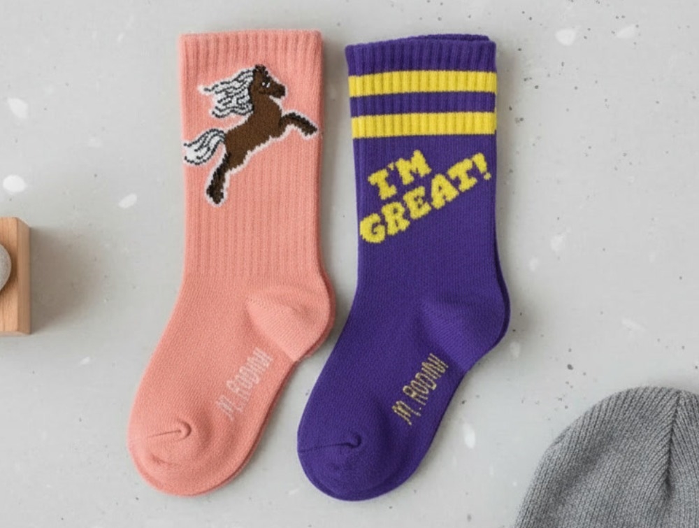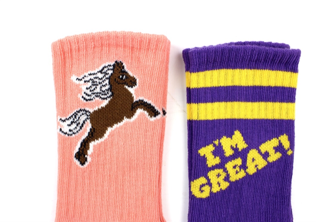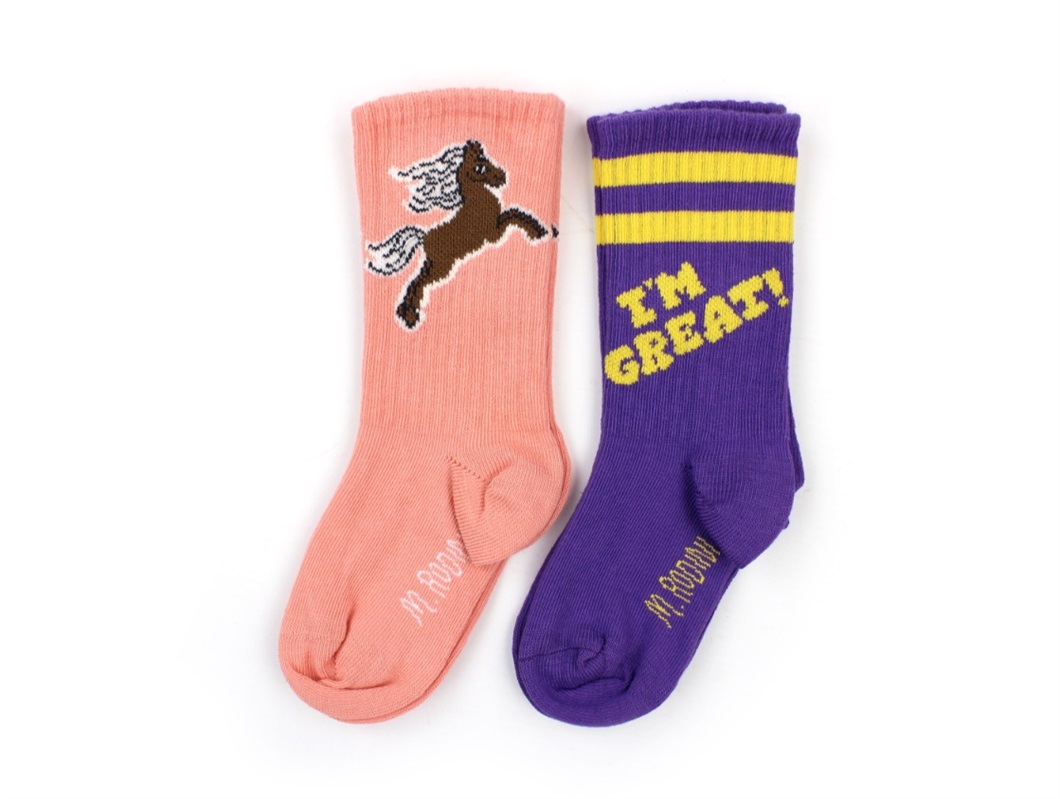 2 par strømper i lilla og lyserød med hest fra Mini Rodini.